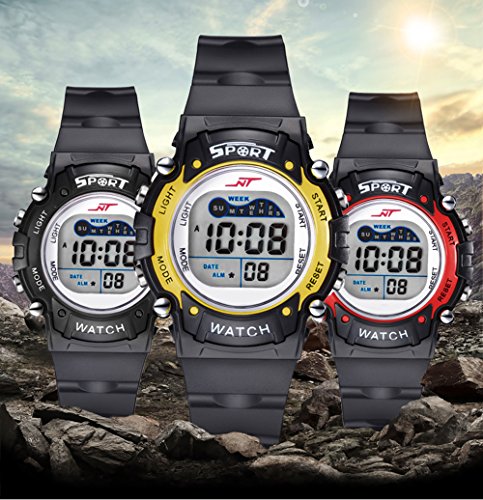-. Feature : Children's high quality electronic watch. / Material:PC case, resin glass, PU band, stainless steel buckle and back cover. / Size: Dial diameter:34mm, Dial Thickness:11mm, Band Width:14-20mm,Length: 210mm, Perimeter:130-190mm / Functions: Stopwatch, Colourful back light,Date, Week, Month,12/24 hours, Dialy waterproof. / We have first-class after-sales service, please rest assured purchase, please contact us immediately if there is any problem, We will reply you within 24hours ,and provide a satisfactory solution.