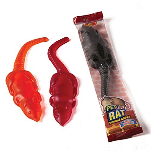 -. Binding : Misc. -. Brand : Jelly Belly -. EAN : 0682858087022 -. Feature : Searching for Adventure In Taste? Find it Here. / You'll actually want these rodents all over your kitchen. / They're soft, chewy gummi treats exploding with flavor. Best of all, each rat contains 100% of the daily value of vitamin C. Perfect for Halloween decor or handing out at parties, each Pet Rat weighs 3 ounces and is approximately 9 inches long. Assorted Flavors May Vary / Jelly Belly Quality Gourmet Candy Since 1869 -. Label : Jelly Belly -. Manufacturer : Jelly Belly -. PackageQuantity : 3 -. ProductGroup : Grocery -. ProductTypeName : GROCERY -. Publisher : Jelly Belly -. Size : 3 ounce -. Studio : Jelly Belly -. Title : Jelly Belly Pet Rat Gummi Candy Assorted Flavors, 3 Oz (Pack of 3) -. UPC : 682858087022