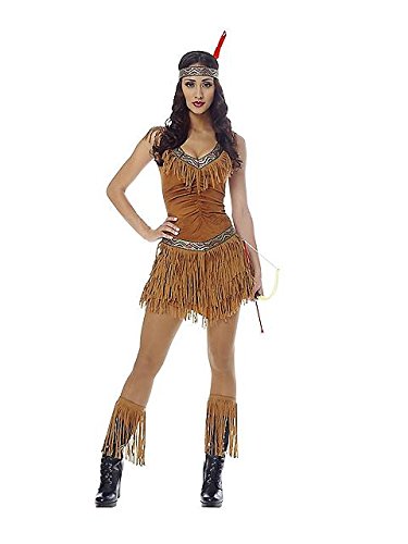 -. Brand : Goddessey -. ClothingSize : One Size -. Color : multi-colored -. Department : womens -. Feature : Small (fits most size 4-6) Medium (fits most size 8-10) Large (fits most size 12-14) / Includes: Dress is ultrasuede with tank straps; fringe on the neckline and hemline and decorative ribbon trim, Zipper in back; flattering ruching in front, Matching ribbon and feather headband with elastic back, Fringe boot cuffs with Velcro fasteners / Boots and bow & arrow not included / Polyester -. Label : Goddessey Llc -. Manufacturer : Goddessey Llc -. MPN : FR48366 -. PackageQuantity : 1 -. PartNumber : FR48366 -. ProductGroup : Apparel -. ProductTypeName : ADULT_COSTUME -. Publisher : Goddessey Llc -. Size : One Size -. Studio : Goddessey Llc -. Title : Sexy Native American Maiden Costume