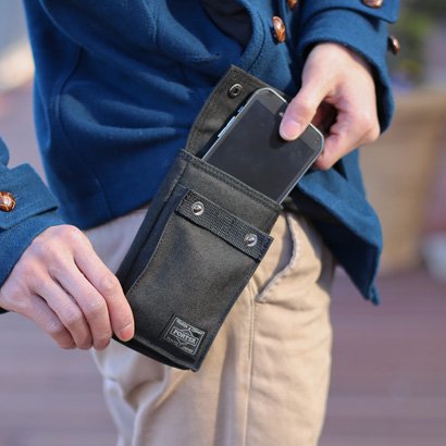 -. Feature : 横8.5×縦15×マチ1.8cm / コーデュラ(R)ダック(縦糸:コットンムラ糸1000D 横糸:コーデュラRナイロン1000D) 100g / PORTER(ポーター) / SMOKY(スモーキー)/モバイルポーチ / 1.ブラック,2.ネイビー