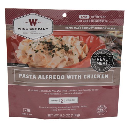 Studio : Wise Publisher : Wise Binding : Misc. Product Description Twelve 10-ounce servings. Perfect for camping and backpacking trips. Cook in the pouch. Delicious pasta alfredo recipe with chicken. Real Food . . . Prepared in minutes by just adding water. Wise Company takes an innovative approach, providing dependable, simple and affordable ready-made freeze dried and dehydrated entrees for emergency preparedness and outdoor use. Whether you are preparing your family for the future or planning your next outdoor adventure, Wise Company provides great tasting, high quality foods that are quick and easy to prepare. Finally a dependable, simple, and affordable choice for both your emergency and camping food needs. Wise makes it easy to prepare! Ingredients: Pasta (Durum Semolina Flour [Wheat], Niacin, Ferrous Sulfate [Iron], Thiamine Mononitrate, Riboflavin, Folic Acid), Food Starch - Modified, Nondairy Creamer (Coconut Oil, Corn Syrup Solids, Sodium Caseinate [From Milk], Mono and Diglycerides, Dipotassium Phosphate, Silicon Dioxide), Nondairy Creamer (High Oleic Sunflower Oil, Corn Syrup Solids, Sodium Caseinate [From Milk], Dipotassium Phosphate, Mono and Diglycerides, Silicon Dioxide, Mixed Tocopherols [to preserve freshness]), Maltodextrin, Bleached Wheat Flour (Wheat Flour, Niacin, Reduced Iron, Thiamine Mononitrate, Riboflavin, Enzyme, Folic Acid), Hydroloyzed Soy Protein, Parmesan Flavor (Salt, Yeast Extract, Potato Maltodextrin, Coconut Oil), Partially Hydrogenated Soybean Oil, Salt, Garlic Powder, Spices, Dried Onion, Disodium Inosinate and Disodium Guanylate, Disodium Phosphate, Natural Flavor. 0
