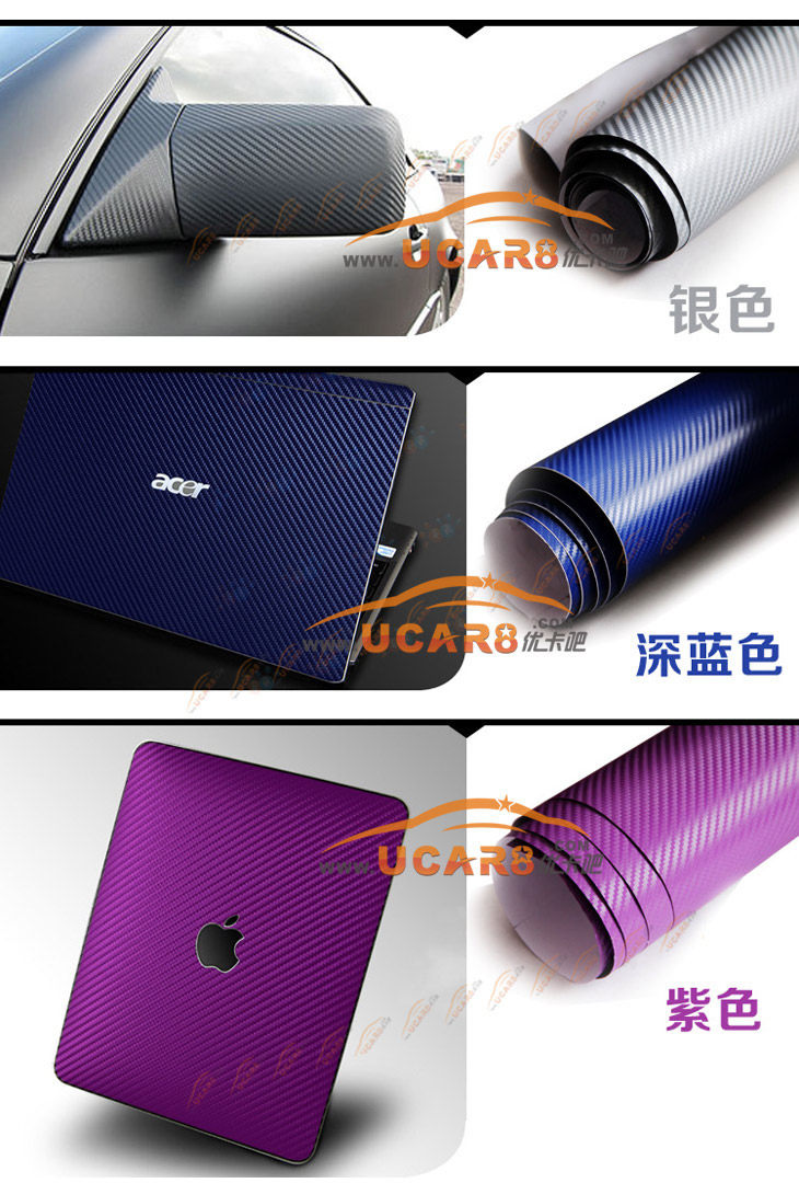 2. Specifications: Stereo carbon fiber width 127cm / 63cm (price is the length of 1 meter price, the number is not limited, such as the need 8 meters, please take a number of 8) 127cm smooth stickers, matt 152cm width, panoramic sunroof Thicker version of 135cm width
