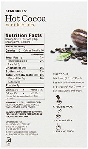 STARBUCKS HOT COCOA MIX, VANILLA BRULEE, 8 OUNCE