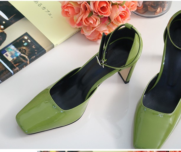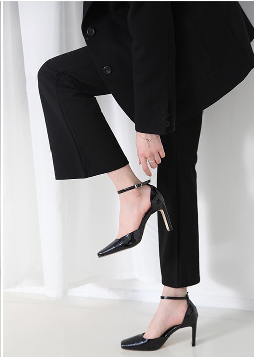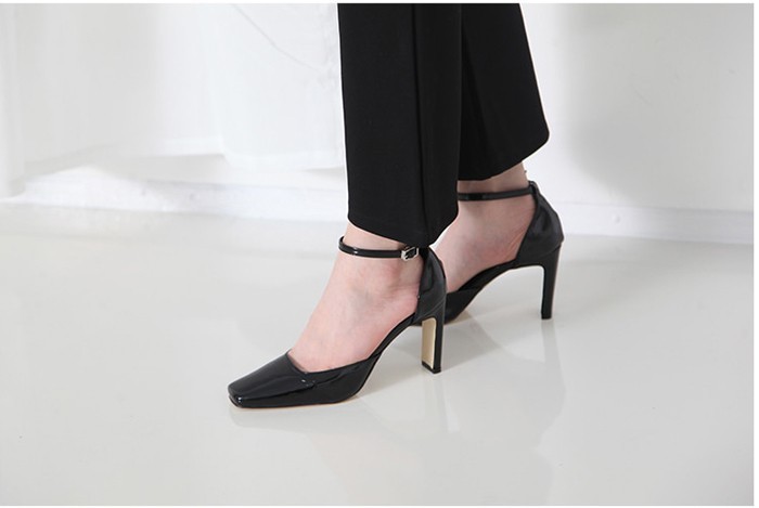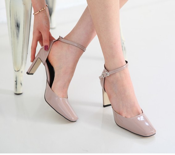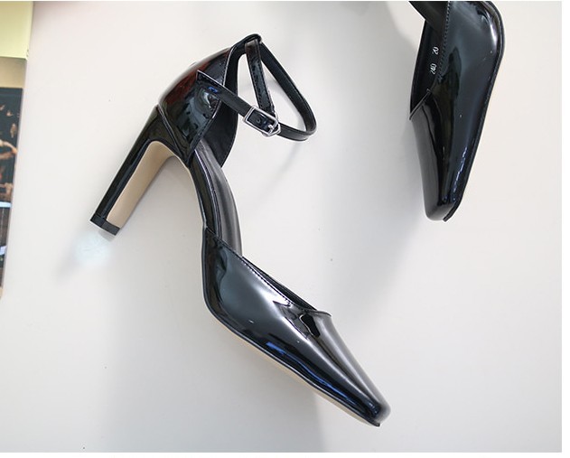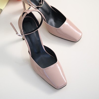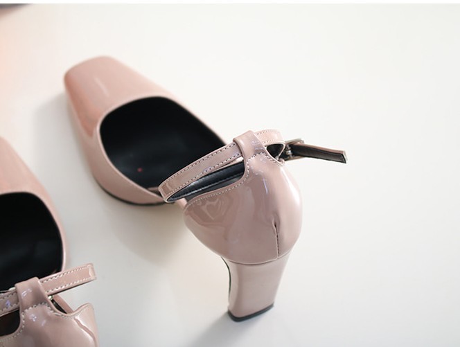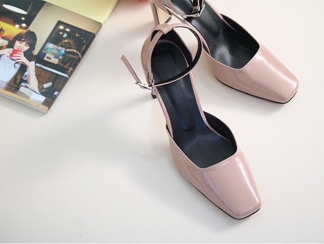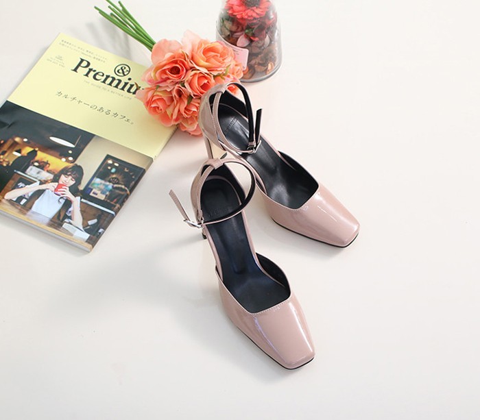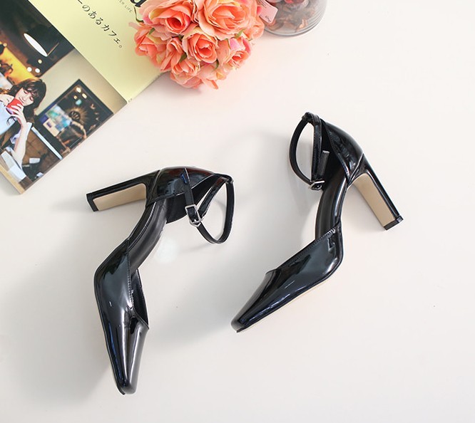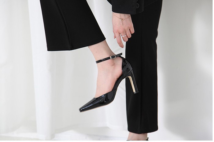 商品名:パンプス レディース アンクルストラップ エナメル調 2018 春 ファッション 靴 婦人靴