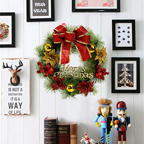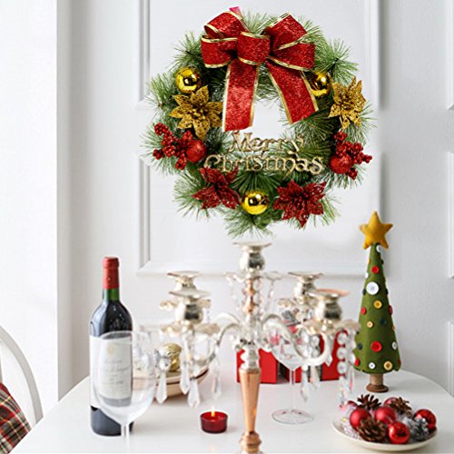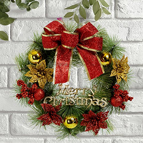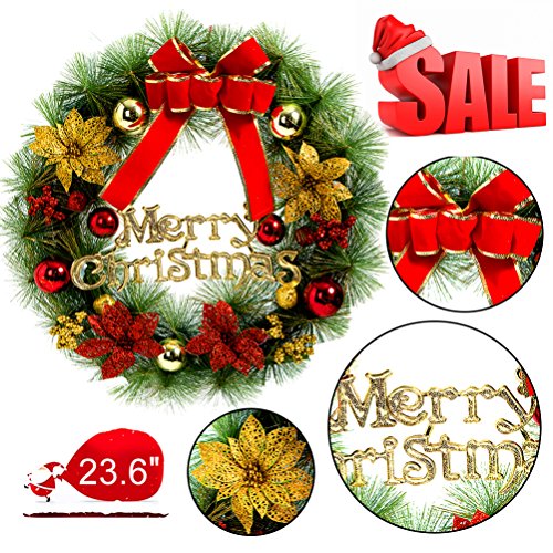 Large Christmas Wreath for Front Door Wall Windows Artificial Poinsettia Xmas Decoration,23.6 Inch