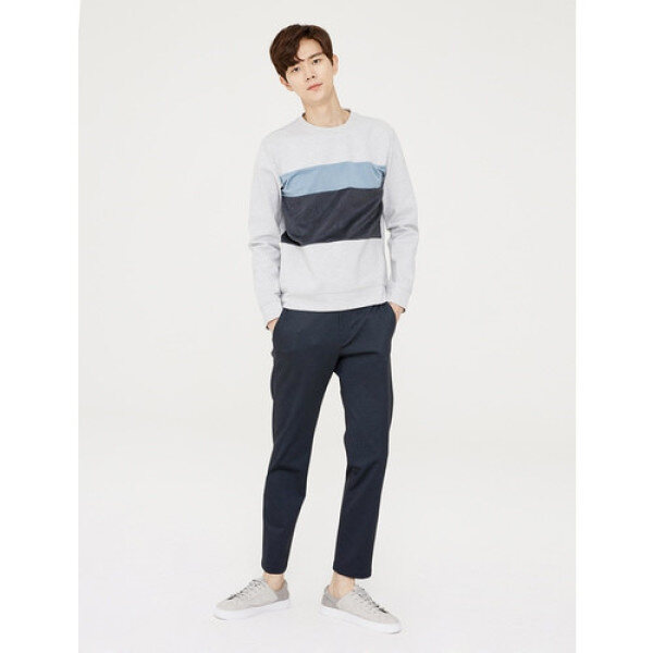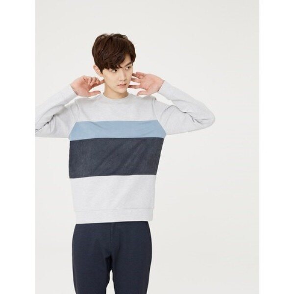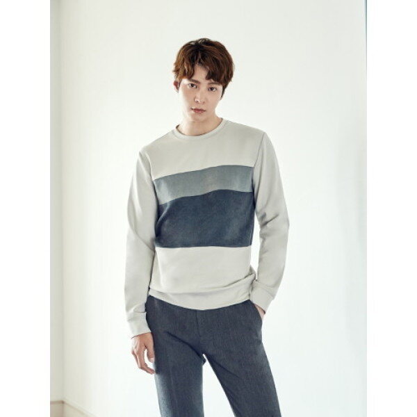 스판 스웨이드 블럭 맨투맨티셔츠