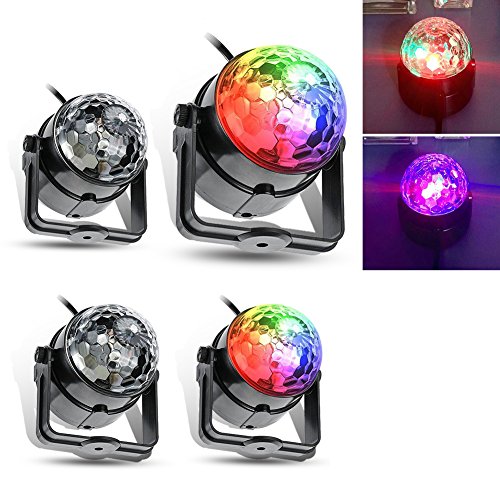 4 Pack LED RGB Party Lights, AUTOSAVER88 3W Sound Activated MP3 Party Disco DJ Stage Crytall Magic Ball Projection Lamp Auto Color Change and Rotate with Handel/Stand