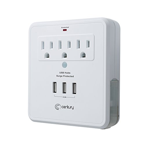 Studio : Century Product Publisher : Century Product Product Description Century 3 Outlet Surge Protected USB Wall Mount can charge all your essential devices. A convenient accessory for any home, office, professional workstation, or entertainment center, this surge protector lets you safely power and charge up to 3 x AC and 3 x USB without worry of electrical damage. 3 AC outlets allow you to power up to 3 electrical devices, and this wall charger features 3 protected USB charging ports. 0
