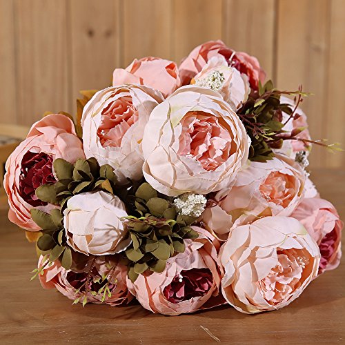 Luyue Vintage Artificial Peony Silk Flowers Bouquet Home Wedding DecorationDo you want to have the flowers which never wither and fall? Yes, we do! The artificial flowers we provide are made of cloth and plastic. The flowers are realistic, perfect for wedding decoration, table arrangement or elegant home decoration.