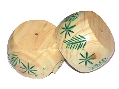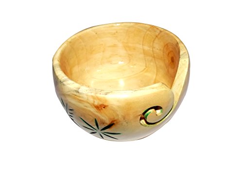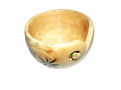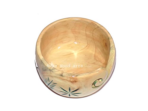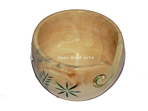 Naaz Wood arts Clear Polished Natural Maplewood Yarn Bowl -6"x4" Handmade from Mapelewood Perfect Yarn Holder for Knitting & Crocheting withen green flower handcarving