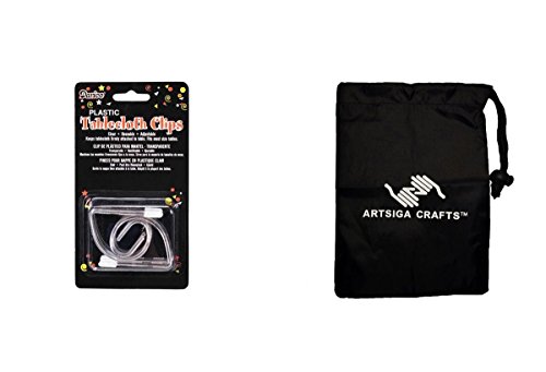 Studio : Studio Eclipse LLC Publisher : Studio Eclipse LLC Binding : Kitchen Product Description Bundle includes Darice Crafts Bundle:Darice Table Cloth Clip Clear Plastic 4 pieces (6 Pack) 1162 15 and 1 Artsiga Crafts Small Bag. Price includes 6 pack(s) per order, with 4 piece(s) per pack. Artsiga Crafts bag measures approximanetly 6 x 8in., made of heavy nylon material and includes a drawstring closure; this bag is deal to store small craft items or cell phones and accessories. 0