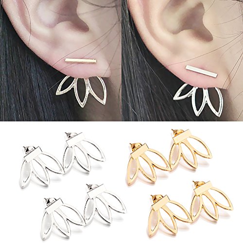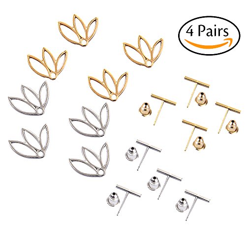 Bassion 4 Pairs Lotus Flower Earrings Jewelry Simple Chic Earrings, Best Gift for Women Girls
