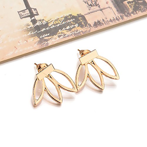 SPECIAL DESIGN: Hollow flower earring design, combine the Chinese traditional culture and fashion elements, stylish and elegant. Simple personality earring ear hook stud jewelry, and it has tow ways to wear, you can put the lotus in front of or behind the earlobe.