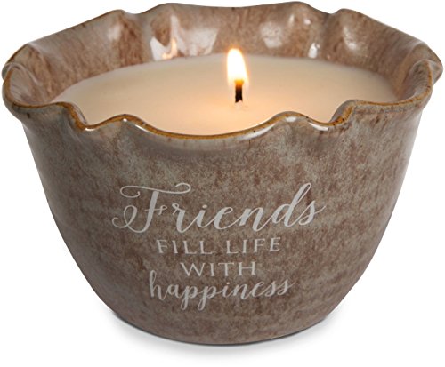 Pavilion Gift Company 86218 Plain Love Lives Here - Friends Fill Life with Happiness Single Wick Ceramic Tranquility Scented Candle,