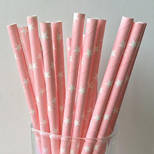 -. Title : Promices Free Shipping 100pcs Pink Paper Straws With Little White Stars For Party Christmas Wedding Decoration