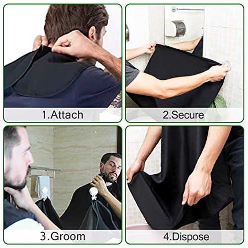 - EASY TO USE - Attach the neck straps and secure to the mirror or somewhere smooth, easily catches your beard and hair trimmings shaving just like a salon cape to allow an easy disposal.