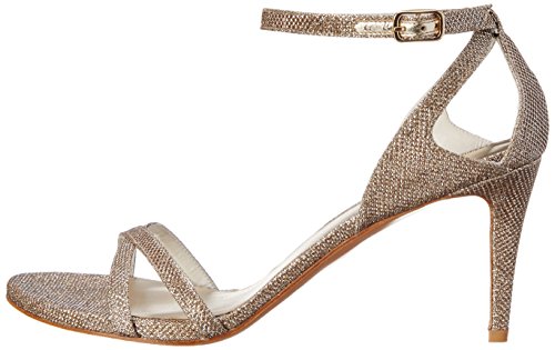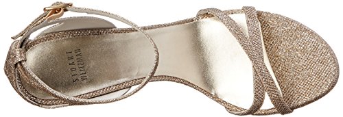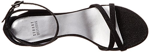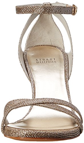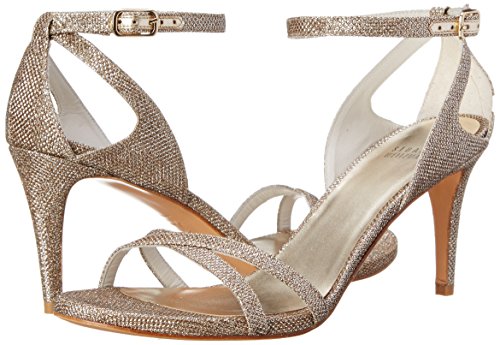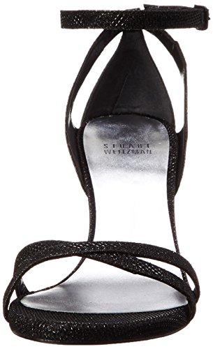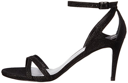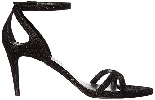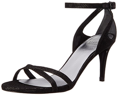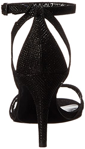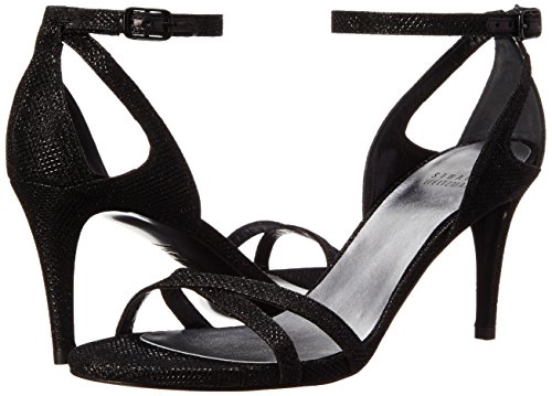 Open-toe dress sandal with textured straps featuring covered heel counter and buckle closure