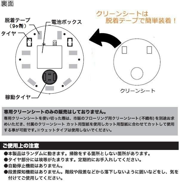 フローリングの上をランダムに動いて移動する事で床の上を拭き掃除するかわいいお掃除ロボットです♪壁や障害物に当たると進行方向が変わります。クリーンシートは脱着テープで簡単に装着可能です。床のお掃除をしてくれるすみっコぐらしの仲間たちに癒されます♪ |