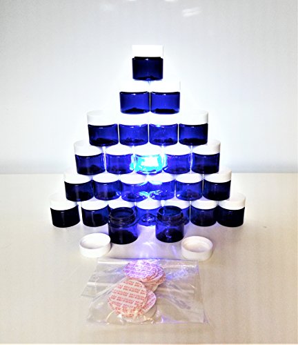 - Half ounce jars are nearly unbreakable, glossy cobalt blue Made in the US, not from overseas Food grade and BPA/ phthallate free