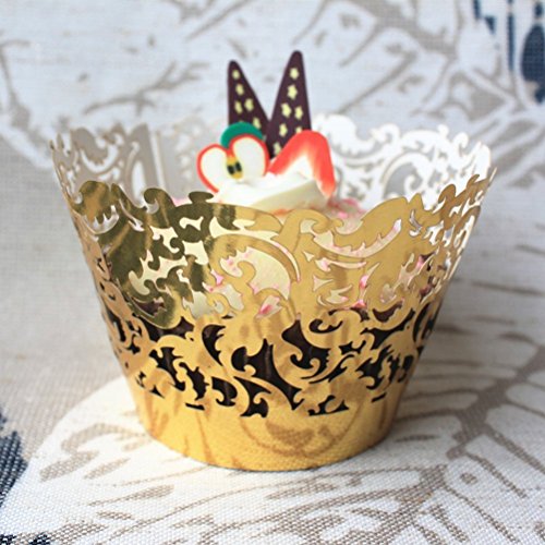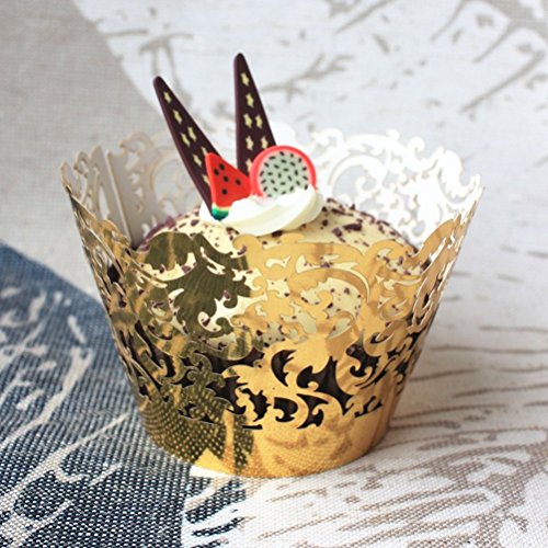 - Color: Golden. - Material: Paper. - Size: 20.5 * 5cm. - Perfect for putting cakes, cupcakes, cookie etc. - They arrive flat packed and are very easily assembled. - Suits for for a wedding, anniversary, engagement,birthday, baby shower, Halloween or Christmas event, make your party more unique. - Note: Can NOT be placed in the oven. Package Including 50 * Muffin Cup Cake Wrapper Case Trays Party Liner Decoration (Golden) 0