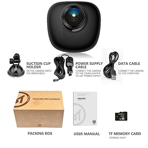 MERRILL Dash Cam 15 Mega Pixel 1080P 170° Wide Angle with Loop Recording, G-sensor, 16G SD Card