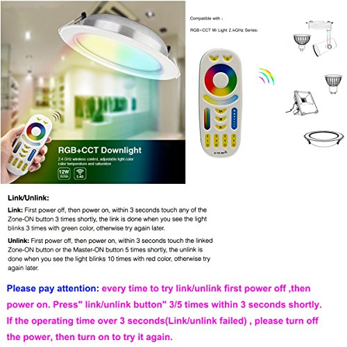 1. Link: First power off, then power on, within 3 seconds touch any of the Zone-ON button 3 times shortly, the link is done when you see the light blinks 3 times with green color, otherwise try again later.