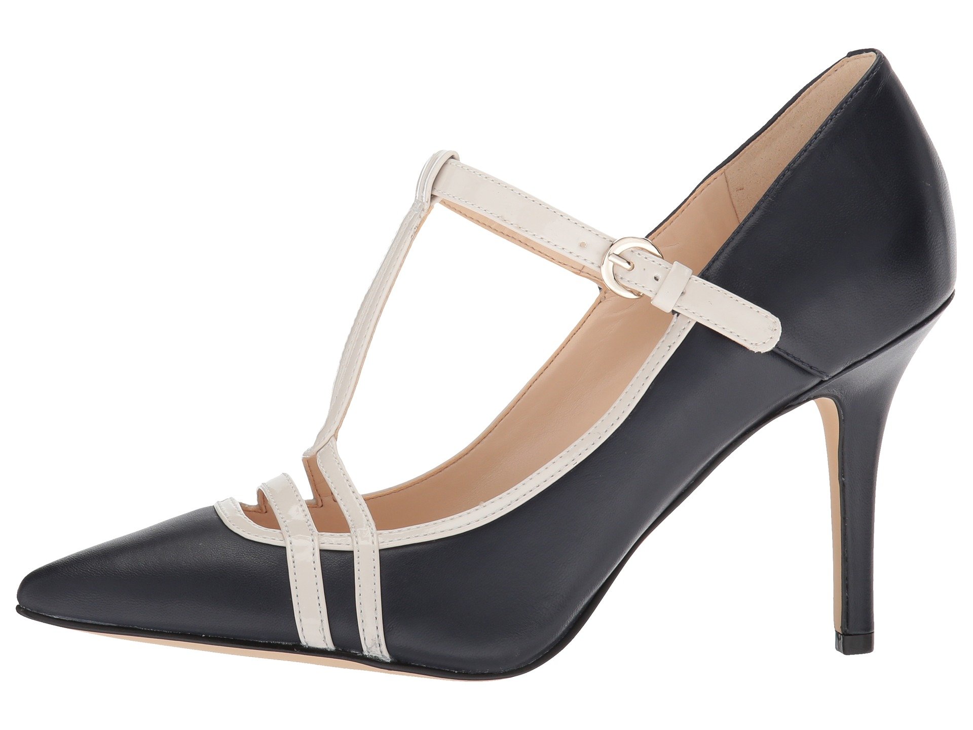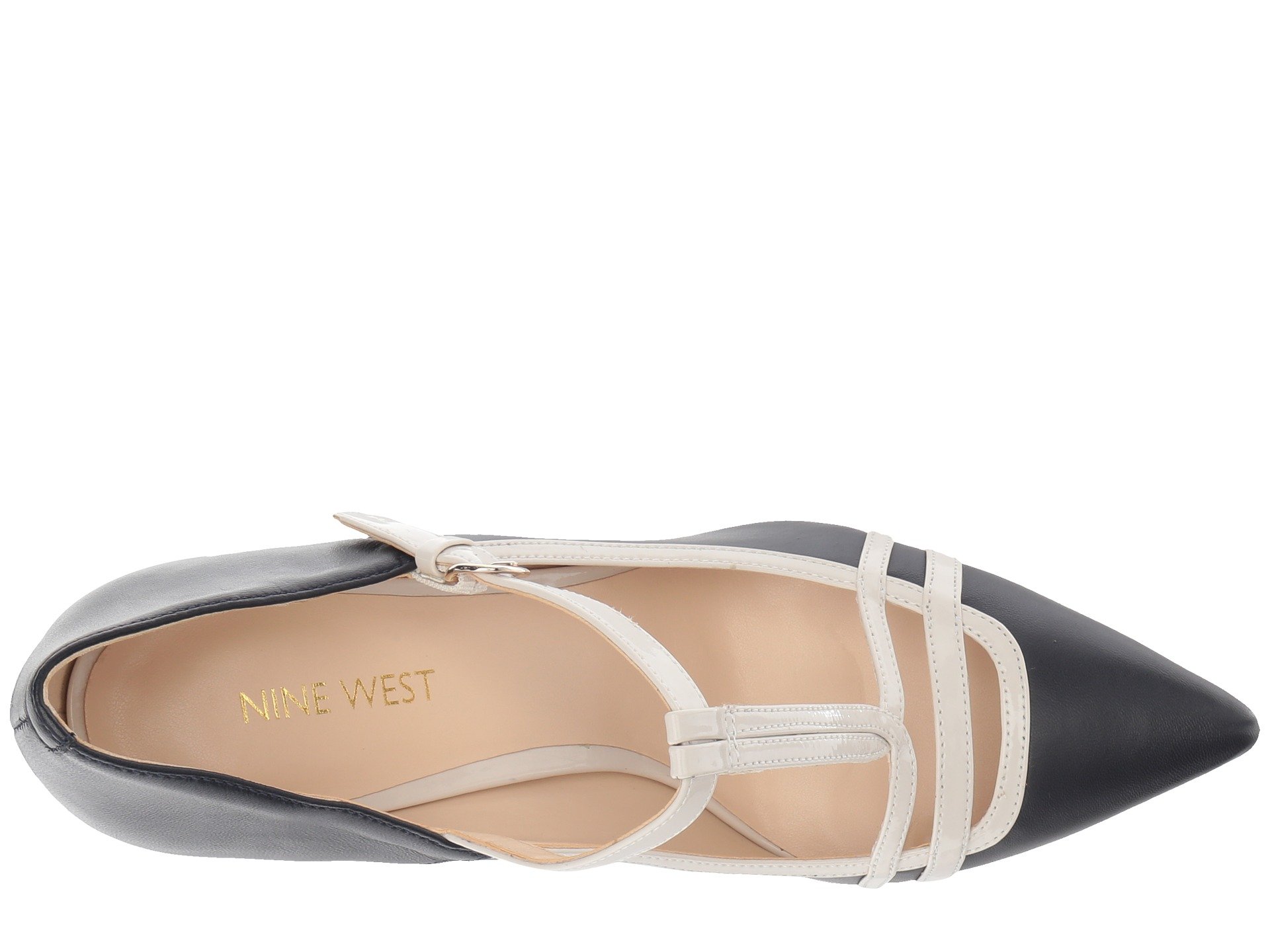 | Product Information SKU: #8986138Flaunt a classic T-strap look with the Nine West? Jantine pump!Soft leather upper.Adjustable buckle strap.Pointed toe for added appeal.Smooth man-made lining.Lightly padded footbed for added comfort.Wrapped heel with textured outsole.Imported.Product measurements were taken using size 8, width M. Please note that measurements may vary by size.Weight of footwear is based on a single item, not a pair.Measurements: Heel Height: 3 1?4 in Weight: 9 oz |
