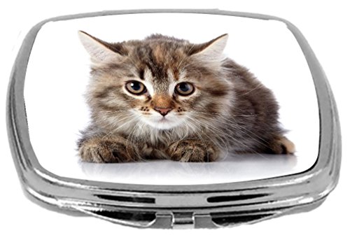 Rikki Knight Fluffy Beautiful Scared Kitten on a White Background. Design Compact Mirror, 17 Ounce