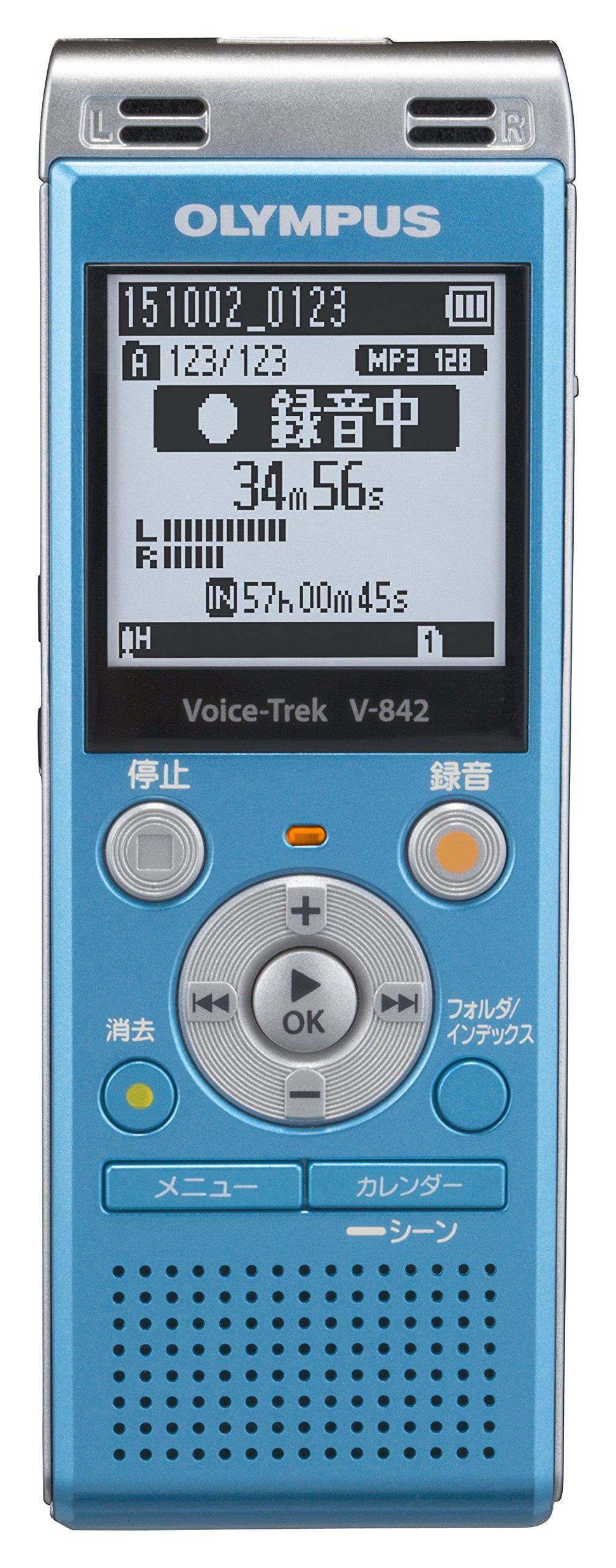 "Olympus" Voice-Trek V-842 "is a" Voice Chaser "that automatically adjusts the microphone sensitivity," True stereo microphone "which realized realistic full realism with two directional microphones arranged at the optimum angle