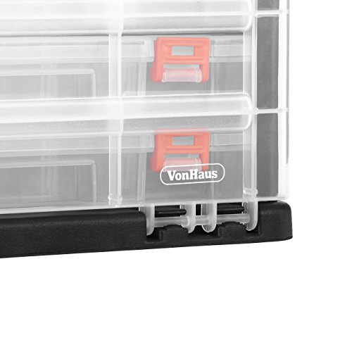 VonHaus Small Utility Tool Storage Box - Portable Arts Crafts Organizer Case with 4 Drawers & Adjustable Dividers (10.9 x 10.1 x 6.9 inches - Black/ Orange)