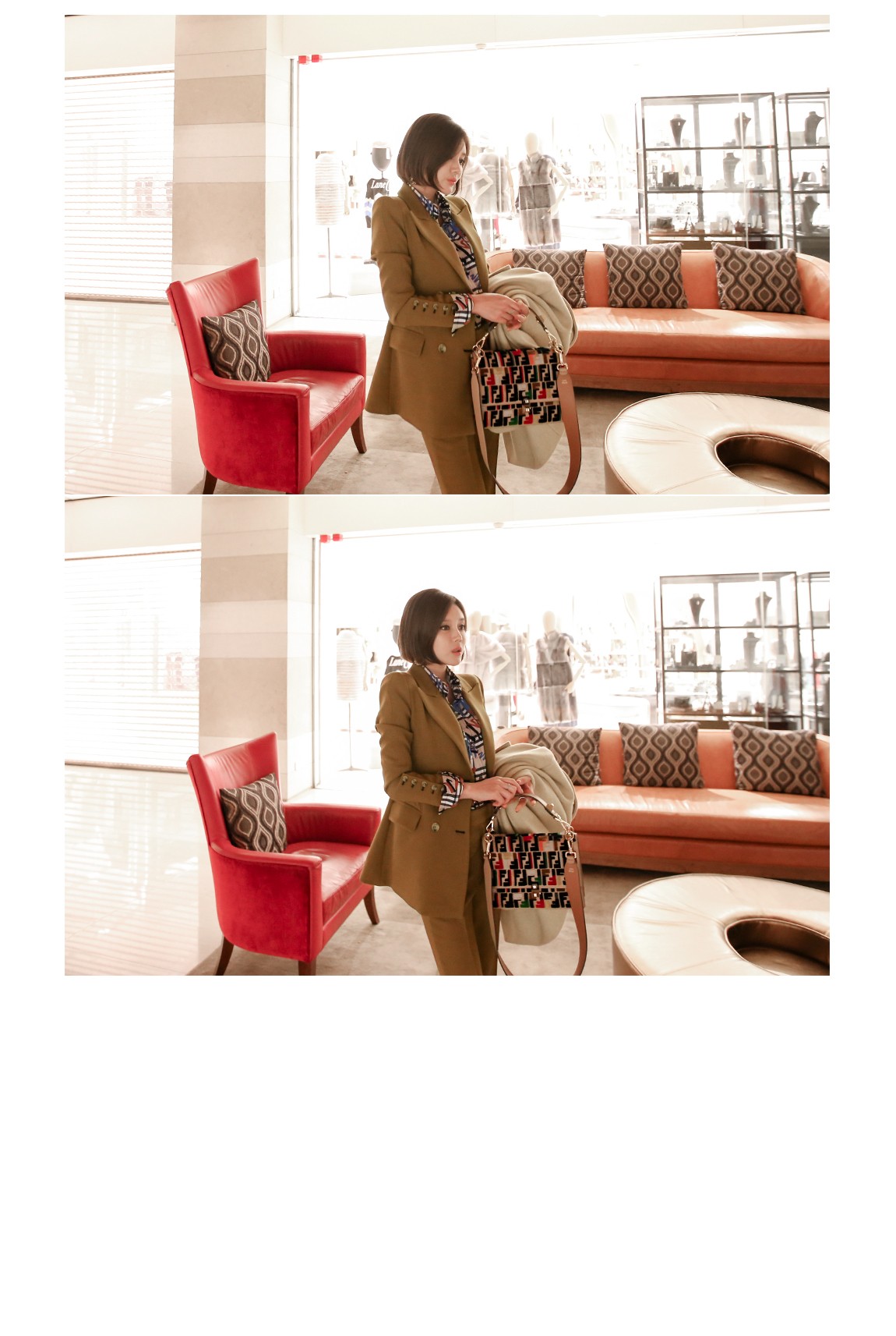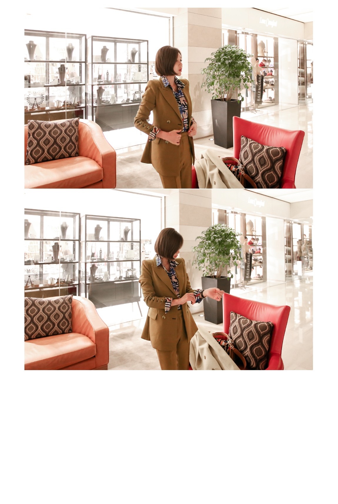ジャケットとセットでコーディネートしてさらに理知的な雰囲気に