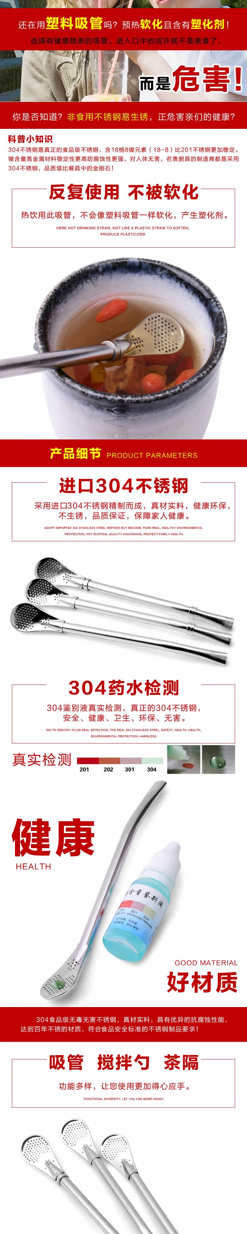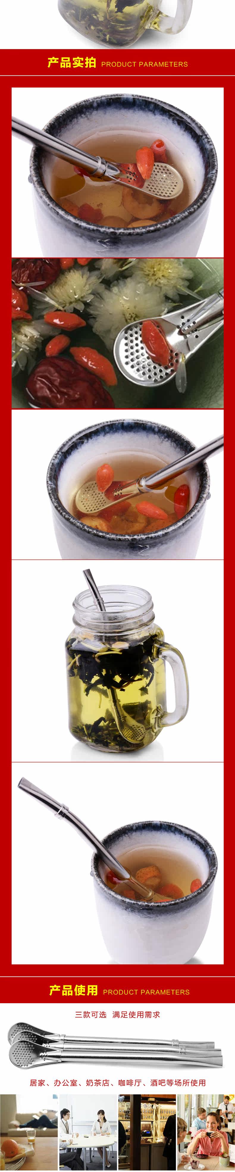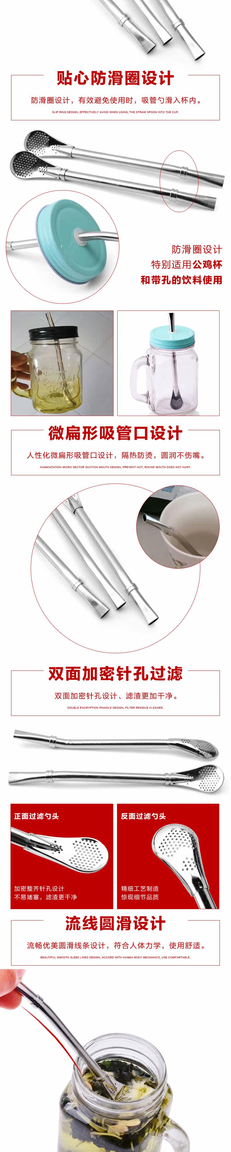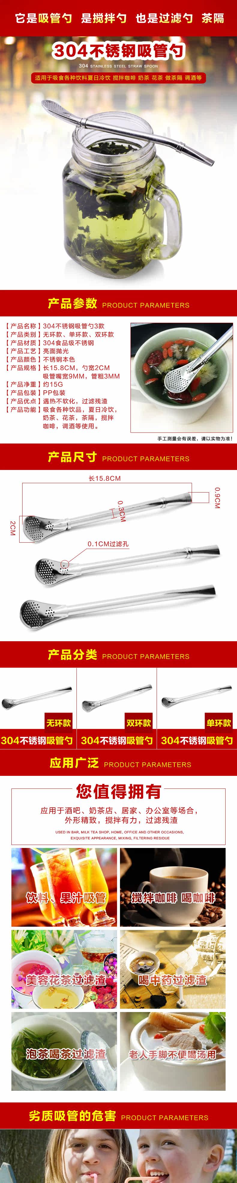304不锈钢吸管勺多用咖啡搅拌勺鸡尾酒滤残渣果汁茶漏防滑过滤勺