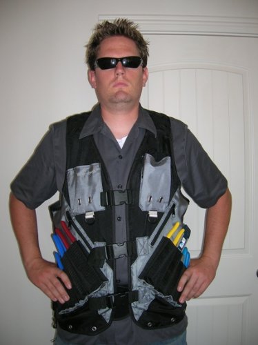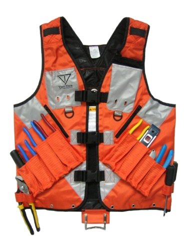 High Visibility Tool Vest with Built in Hydration Pouch - Electricians, Surveyors, Contruction (Orange)