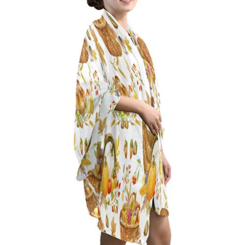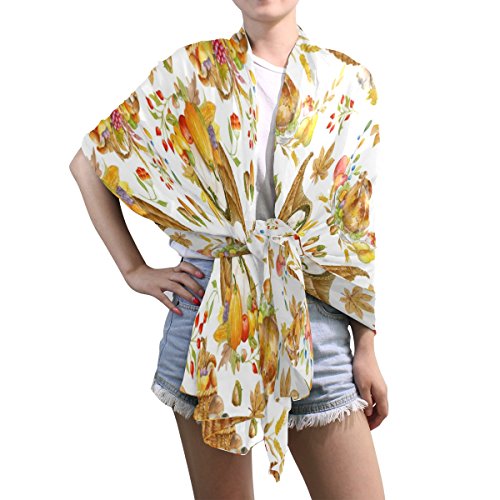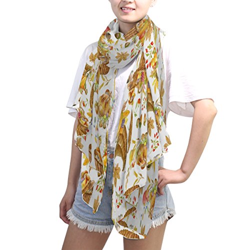 (ALAZA)/Accessories/Cold Weather Accessories/DIRECT FROM USA/ALAZA Thanksgiving Watercolor Pumpkin Chiffon Silk Long Scarf Shawl Wrap