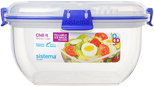 Sistema Klip It Collection Chill It To Go Food Storage Container with Refillable Ice Brick, 55 Ounce/ 6.8 Cup