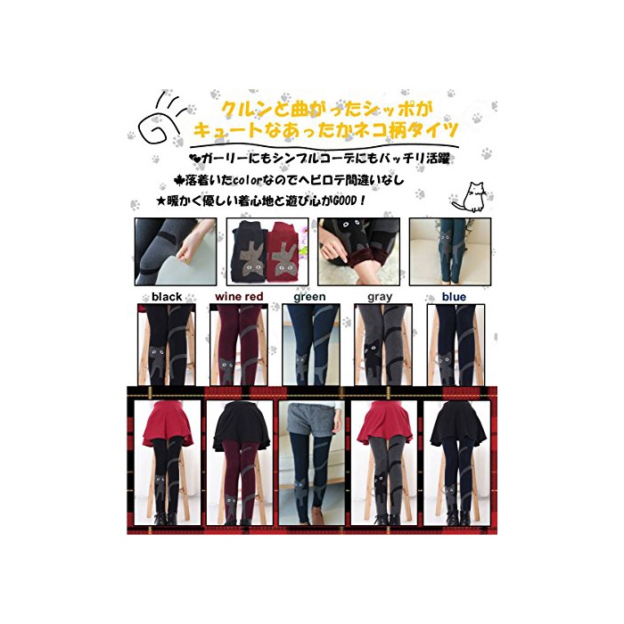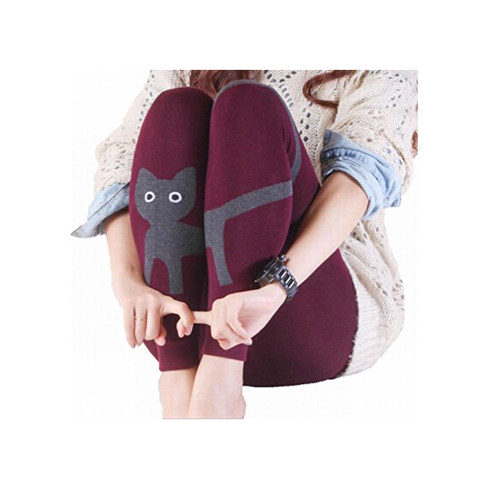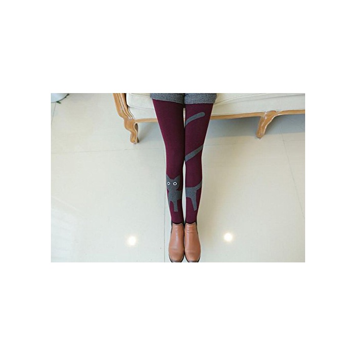 원본상품명: ネコ レディス 裏起毛 ねこ かわいい 暖かい タイツ 9分丈 女の子 人 スパッツ おしゃれ かわいい 猫 レギンス 9部丈 保 防寒 (ワインレッド)