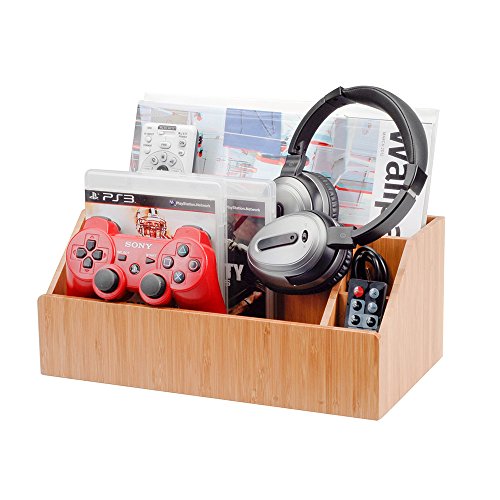 MobileVision Bamboo Media Storage Organizer Holder for Remote Controls, Video Games, Audio Accessories, Small Electronics Caddy & Office Organizer