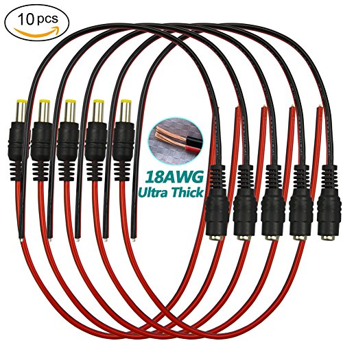 You may connect extra Battery pack with this cable or for CCD Camera installation. Most dome- or bullet-style surveillance cameras come with a short power cable but need a patch cable to connect to a power supply. Connect your camera to the power supply easily with the Male DC Power Pigtail, which has 9.5 inch of red and black color-coded wires along with a standard center-positive plug to connect easily to your camera.