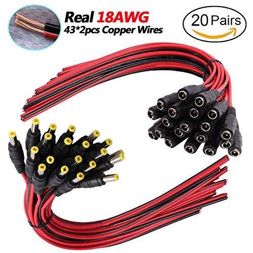 ★【Real Thick 18AWG】- Real 18AWG vs Common 22AWG, real 18AWG are bigger wire than other 22AWG pigtails, as it has heavy gauge with 43 pcs 100% copper wires per single cord, 86 pcs total for the two Red / Black cords. This makes the difference when using with bigger power supplies, and allows them to be used for higher current devices, they should be good to 5A or even a touch more with real 18AWG.