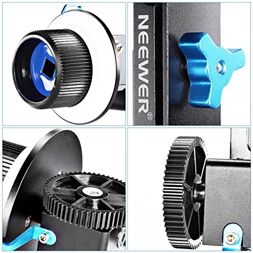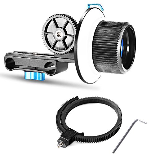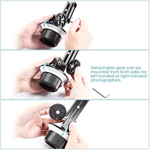During various filmming situations,the effecient method to control focus is always needed to make desired effect. Therefore, the durable Neewer gear-driven follow focus tries its best to help them achieve the goal.After easy installation, it allows you to adjust the focus in a more accurate ,smooth and sturdy way by turning the grooved knob,reduce the defect of merely using hand to change focus. To fit in with more lenses, an adjustable gear ring belt is designed to fit wider range of lense diameters, making it best choice for those who have different brands of camera.