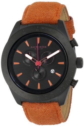 -. Title : Akribos XXIV Men's AK701OR Ultimate Swiss Quartz Chronograph Black Stainless Steel Orange Leather-Suede Strap Watch
