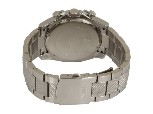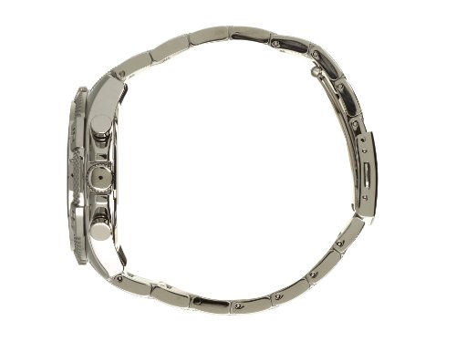 -. Feature : Stainless steel case and bracelet. / Black dial. / Quartz movement. / Chronograph. / Date.