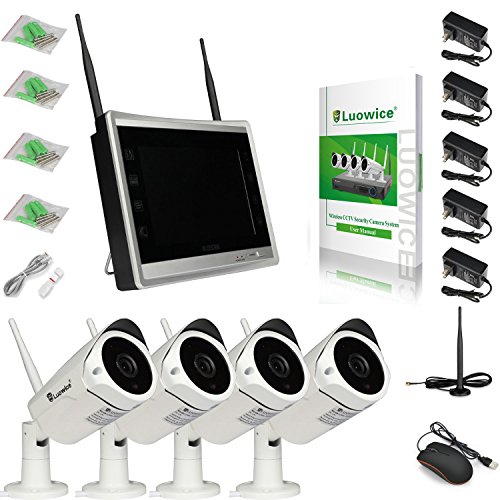 [Audio & Video] Luowice 4CH 960p HD Wireless Home Security Camera System with Built-in Monitor & Router 1 TB HDD Indoor/Outdoor Surveillance Cameras with Night Vision