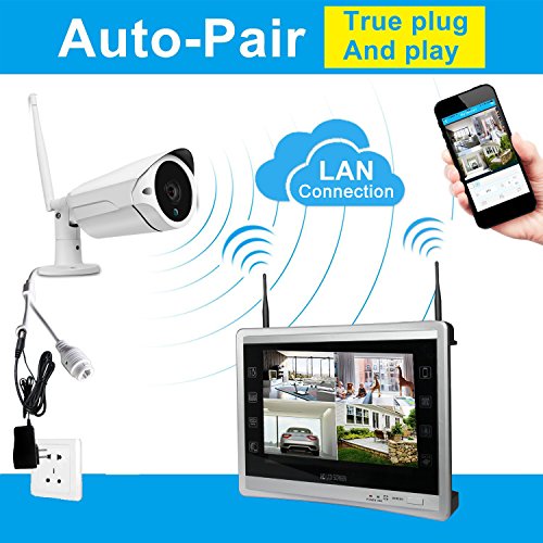 [All-in-one] 4 channel WiFi NVR kit with built-in 11" Monitor with 1TB Hard Drive, cameras auto pair.