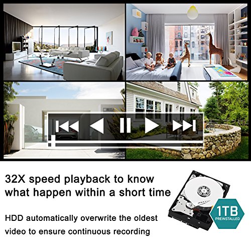 【Email Alert & Expandable Storage Capacity】Support email alert function to push snapshots when motion is detected. 1TB hard drive is pre-installed and support up to 7 days high quality videos and the system will overwrite the oldest record automatically to ensure continuous recording.