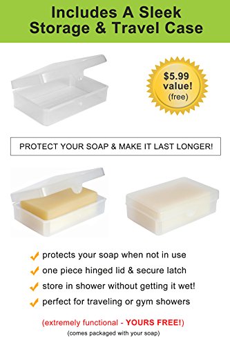 - FREE STORAGE & TRAVEL CASE ($5.99 VALUE): Protects your soap when not in use & makes it last much longer One piece, clear see thru case with hinged lid and secure latch, store soap in shower without getting it wet, PERFECT FOR TRAVELING OR GYM USE, keep soap dry and lock in aromatherapy freshness. Now you can enjoy & experience the therapeutic benefits of ASUTRA soaps anywhere you go - a MUST HAVE!