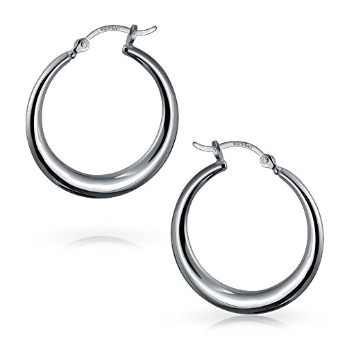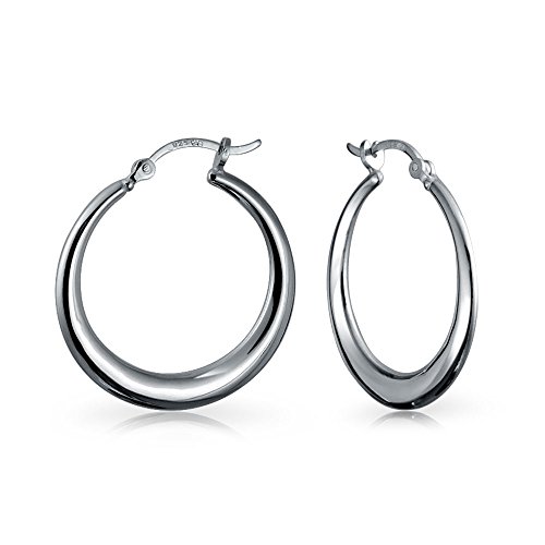 To add modern glamour to your personal style, choose these lovely hoop earrings. Accented by a 1.75 in oblong, large round circle of gleaming .925 silver, they will take your look up a notch, day and night.