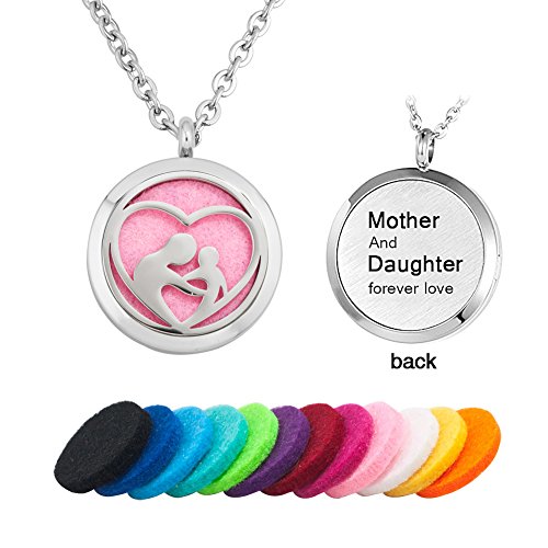 Third Time Charm Mother And Daughter Forever Love Necklace For Essential Oil Diffuser Aromatherapy Jewelry, 12 Refill Pads