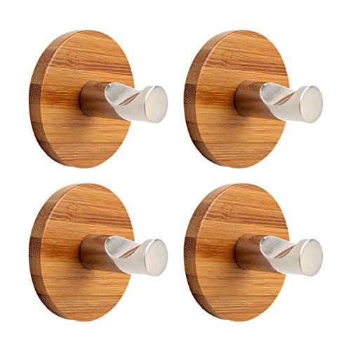MOMO SZ Stainless Steel Adhesive Hooks Heavy Duty Hooks for Home Kitchen Bath (4 pcs Bamboo Hooks)