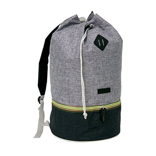 -. Feature : Over 60 liters total storage space / Adjustable shoulder straps for hands-free transport / Zippered base is water and odor resistant / Cinch top drawstring closure / Fully lined interior